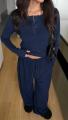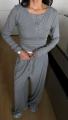 Стильный костюм с лонгсливом и свободными брюками на кулиске.