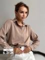 Добавьте свободы в деловой аутфит, используя рубашку с рукавами на патах, кокеткой со встречной складкой на спинке и суппатной застежкой спереди.