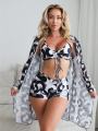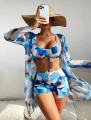 2026 - раздельный женский купальник с накидкой, который идеально подойдет для пляжного отдыха и купания в море Купальник доступен в ярких цветах с красивым принтом, который придает ему особый трендовый вид В комплекте вы найдете шортики, лиф на завязках, которые выгодно подчеркнут фигуру Эта модель подходит на маленькие и большие размеры и имеет легкий пушап без косточек, который создает красивую форму груди.