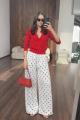 Гороховые брюки лгкая, стильная модель свободного кроя на эластичной талии Струящаяся ткань красиво двигается при ходьбе, создат расслабленный, но аккуратный силуэт Актуальный принт в горох делает образ выразительным и женственным.