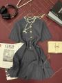 Красивое платье-это всегда отличный выбор для каждой Его изящная текстура поможет вам почувствовать комфорт Это трендовое платье является предметом классики и оригинальности Золотые пуговицы добавляют нотку шика и роскоши!.