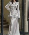 Жакет на запах с мягкой драпировкой подчркивает талию и создат женственный силуэт Многослойный низ добавляет образу объма и утончнной динамики.