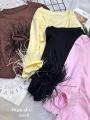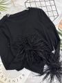Лонгслив с перьямиРазмер единый 42-48Цена 900₽
