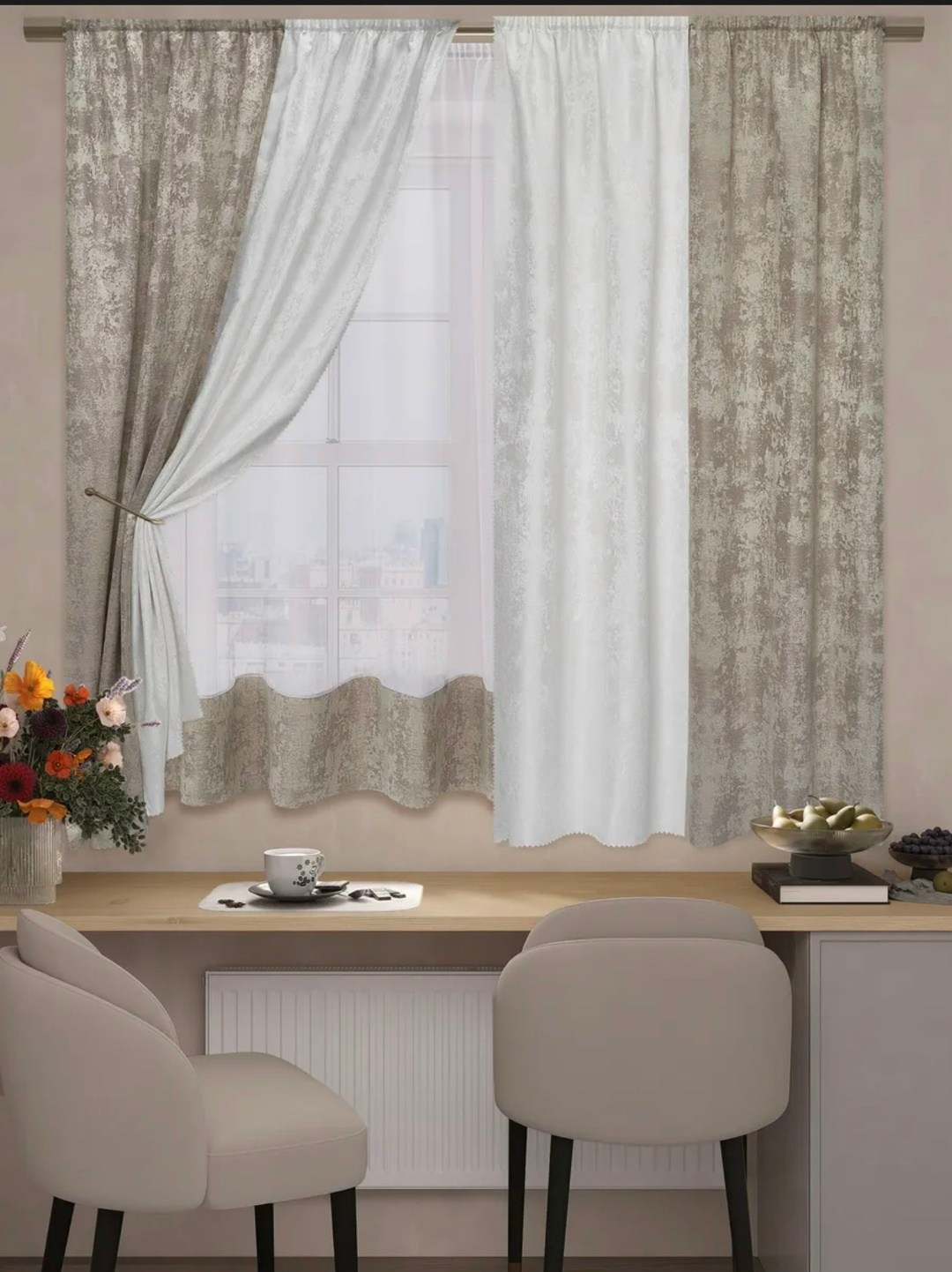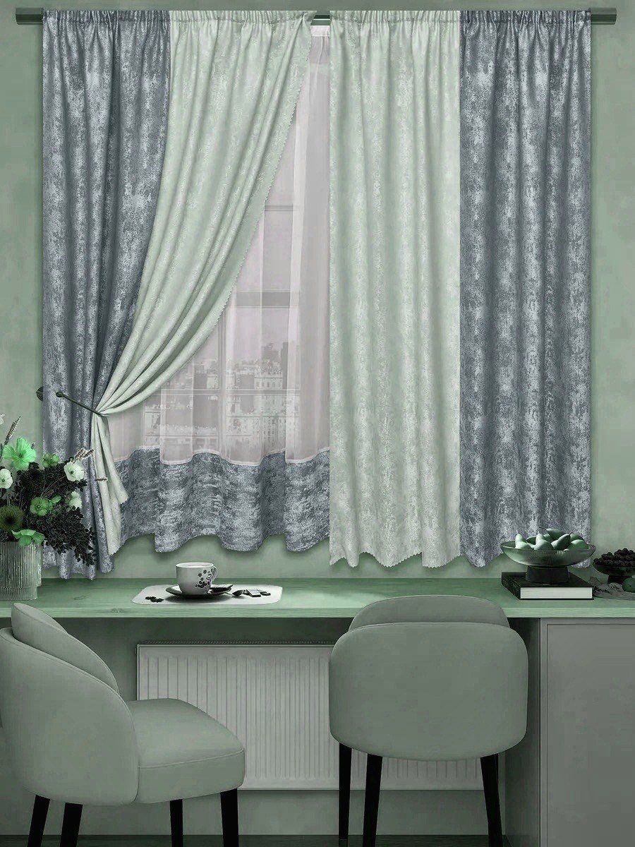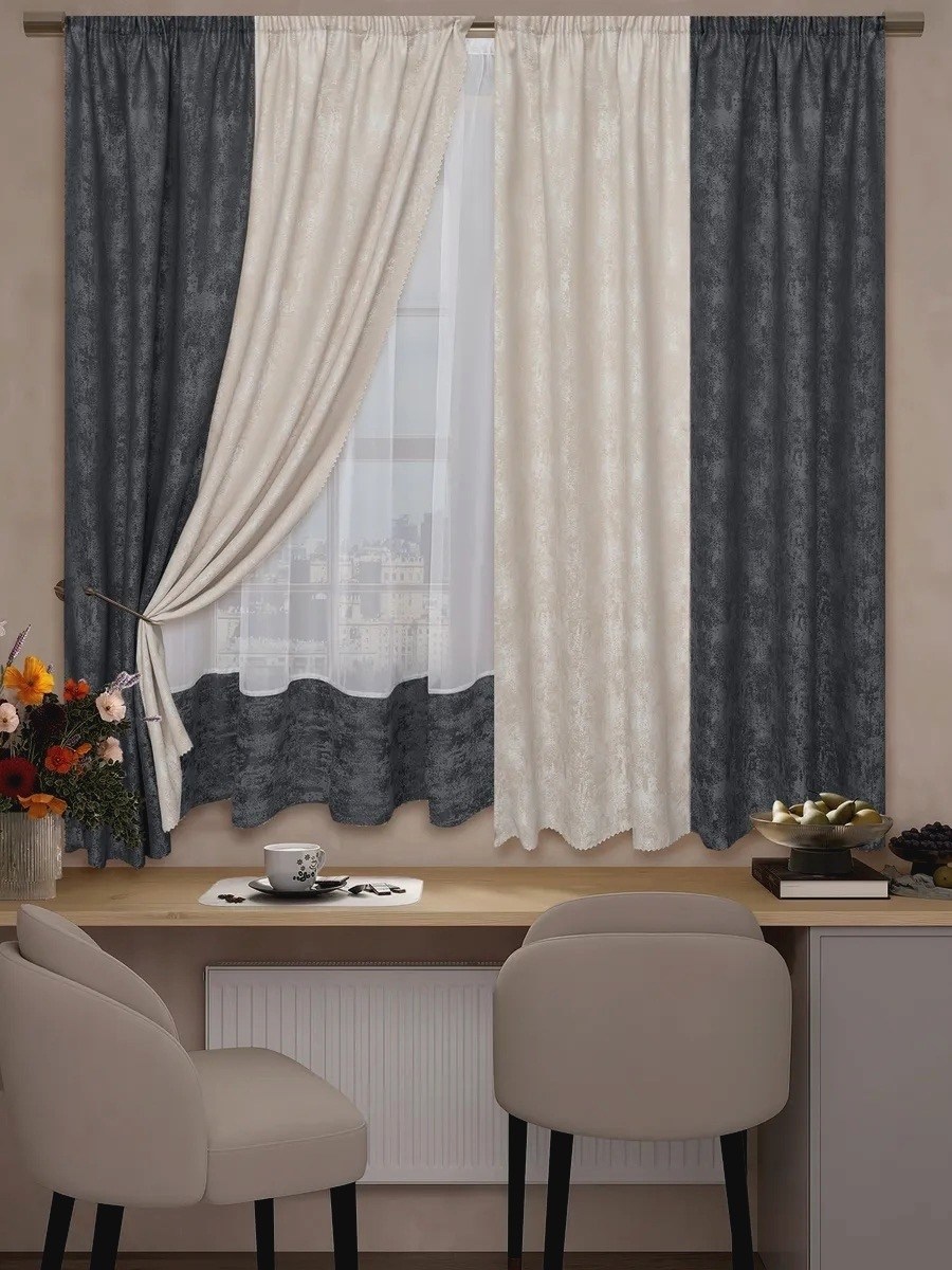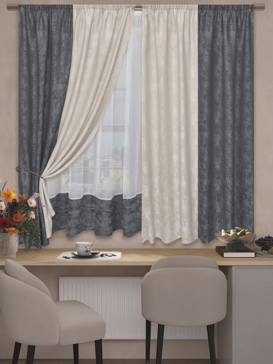 Шторы на кухню короткие с тюль