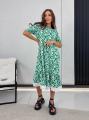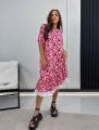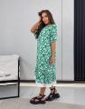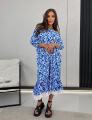 Стильное миди-платье с геометрическим узором и белой оборкой идеальный выбор на лето ,.