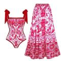 Элегантная винтажная двоечка слитный двухсторонний купальник и юбка в пол.