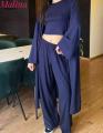 Эффектная тройка с топом-бандо, широкими брюками и легкой накидкой Идеальный вариант для стильных летних образов, отдыха и выхода.