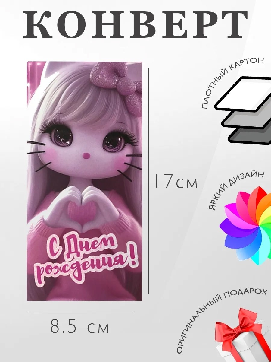 Классические конверты на все случаи жизни Можно поздравить с днем рождения родственников, друзей, коллег, или просто подарить деньги, сертификат в салон, магазин, спортклуб, ресторан, книги и т П , билеты на концерт, в кино, на игру, мат или турнир или использовать, как копилку для денег Конверты с различными надписями и ярким рисунком.