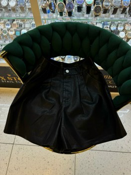 Шорты из эко-кожа стильное и комфортное, модель с высокой посадкой пуговицы,молния,.