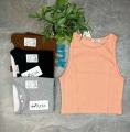 Майка женская, укороченная Самая популярная модель в гардеробе каждой девушки Топ выполнен из высококачественного хлопка кашкорсе, мелкий рубчик, круглая горловина, оригинальные бретели обработаны широкой бейкой.