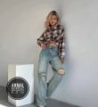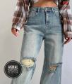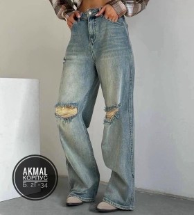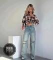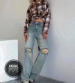 Гранжевые голубые джинсы с прорехами на коленях.