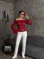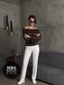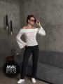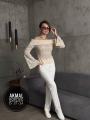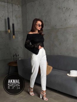 Лонгслив-декольте из гипюра с рукавами-раструбами.