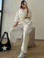 Элегантный костюм-двойка с широкими брюками стиль, который говорит сам за себя.