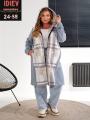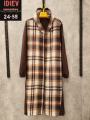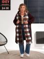 Женская кардиган в клетку с карманами.