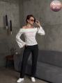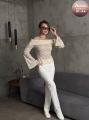 Гипюровый лонгслив-декольте с длинными рукавами-колокол чувственное воплощение возвышенной элегантности, создающее завораживающий образ, полный загадочности и роскоши.