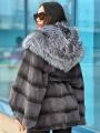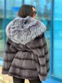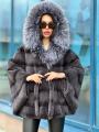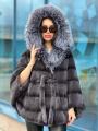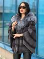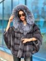 Шубка из меха бобрика с чернобуркой оверсайз размер летучая мышь.