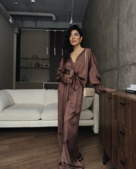 Ткань шелк в качество lux длина рубашки спереди -70 см, длина рубашки сзади-74 см, длина низа-105 см.