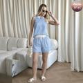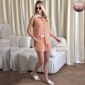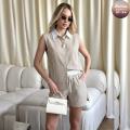 Летний костюм из двух предметов: рубашка-безрукавка и шорты на кулиске сама суть летней беззаботности, где свобода кроя и расслабленный шик создают идеальную симфонию комфорта и элегантности.