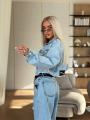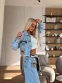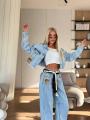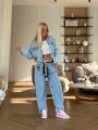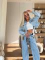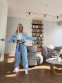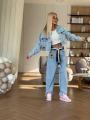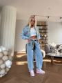 Стильный джинсовый костюм miu miu premium качества, джинсы укороченная джинсовка, джинсы в стиле багги светло-голубого цвета, расслабленный силуэт, высокая посадка идеально подчеркивает линию талии, в комплекте декоративный пояс.