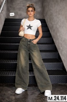 Те самые wide-leg джинсы в глубоком винтажном цвете Идеальная высокая посадка, которая круто подчеркивает талию, и свободный крой для тех, кто ценит комфорт.