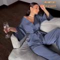 Эта пижама изготовлена из высококачественного шелкового материала, мягкого и комфортного, что обеспечивает вам невероятное ощущение при носке В дизайне используется свободный кардиган с элегантными завязками, который одновременно моден и практичен, идеально подходит для отдыха дома.