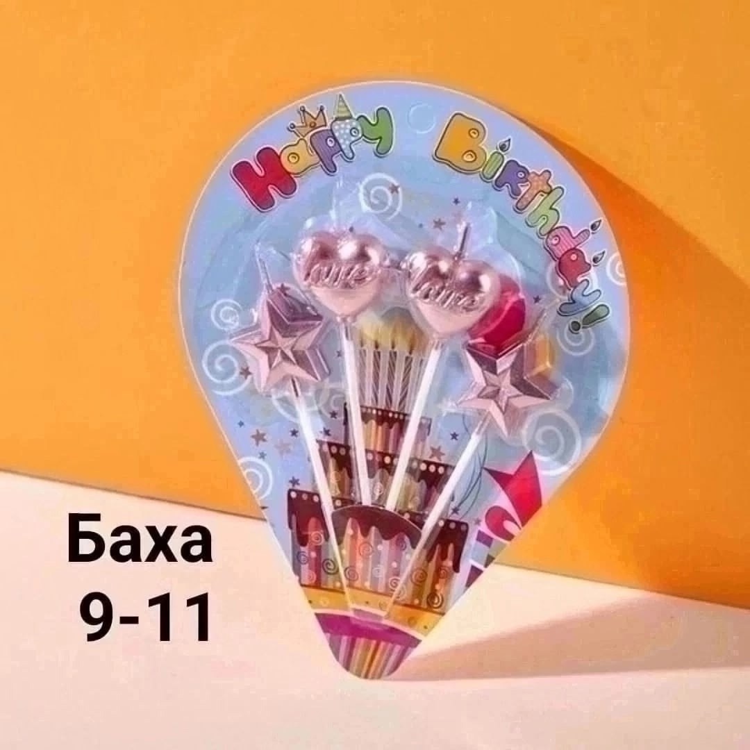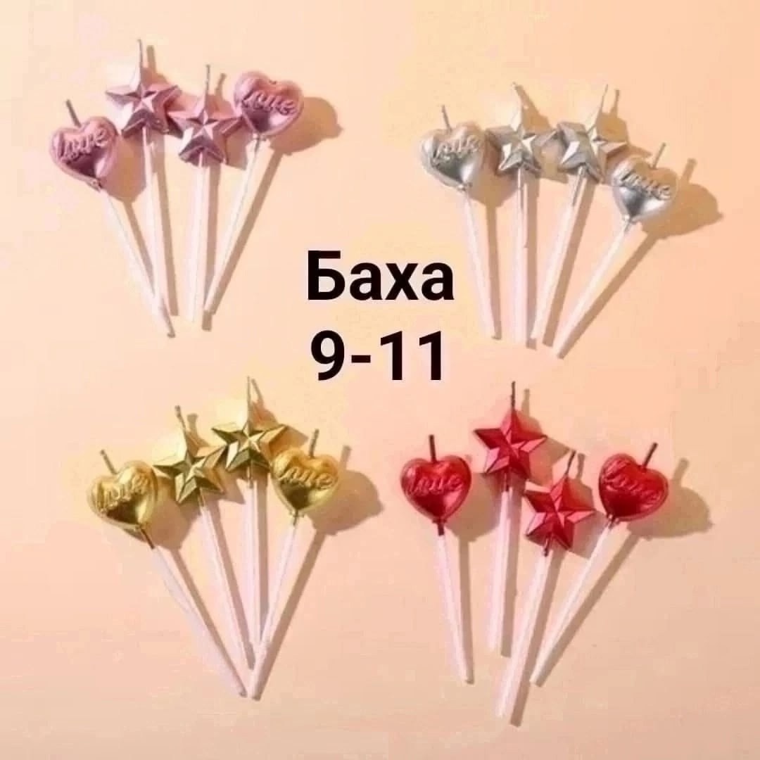 Свечи выполнены из парафина и расположены на удлиненных пластиковых шпажках для размещения на торте или другом кондитерском изделии.