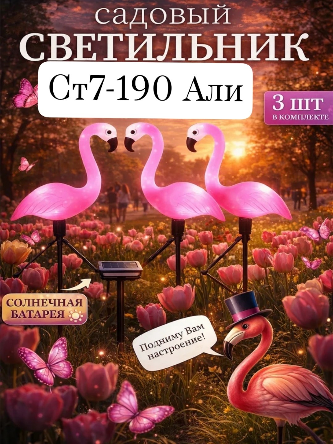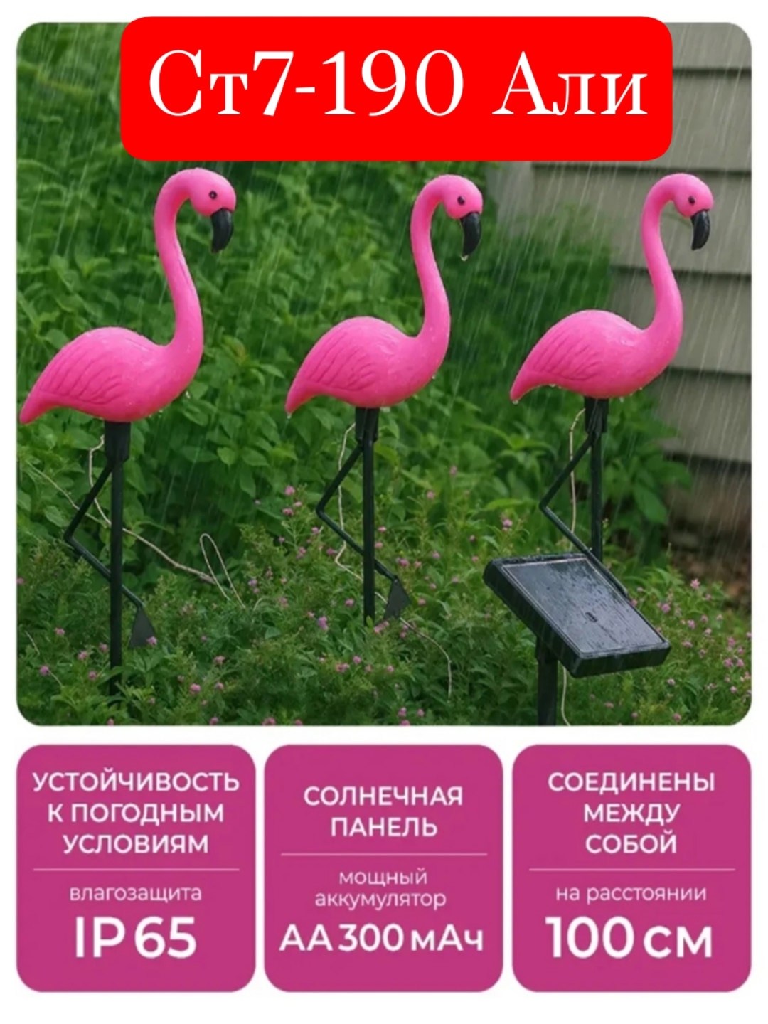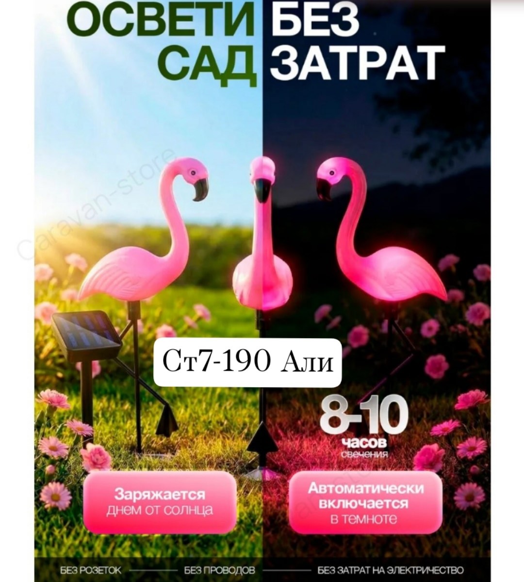 Светильник садовый фламинго на солнечной батарее В наборе 3шт.
