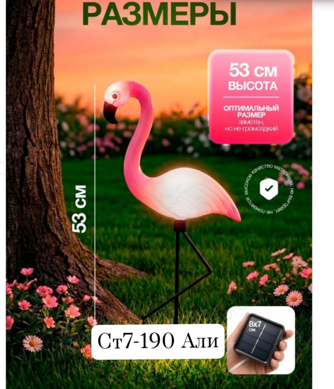 Розовый фламинго станет ярким акцентом для любого интерьера двора или улицы, добавляя атмосферу уюта и стиля Напольный формат позволяет легко размещать изделие в разных уголках территории, а портативный дизайн дает возможность без труда перемещать фигурку при необходимости Декоративные фигуры фламинго прекрасно подходят для оформления вечернего освещения: мягкий свет создает приятную обстановку для отдыха или вечерних прогулок.