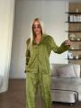 Стильный костюм тотеме premium качества, выполнен в пижамном стиле, из шелка, рубашка свободного кроя прямые брюки на резинке, выполнен в цвете беж который дополнен контрастным черным геометрическим узором, идеальная посадка.