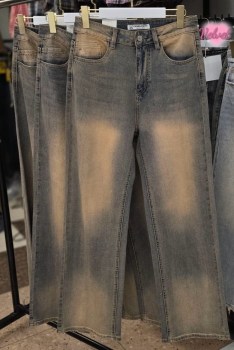 Стильные джинсы трубы с эффектом варки.