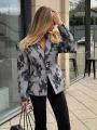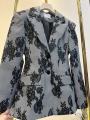 Пиджак с кружевным принтом выразительный, графичный, с акцентом на детали.