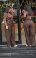 Модель имеет расширенный силуэт и глубокие складки спереди, красиво ложащиеся по фигуре и визуально удлиняющие ноги.
