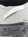 Сверху мягкая резиночка, чтко фиксирует джинсы на животике.
