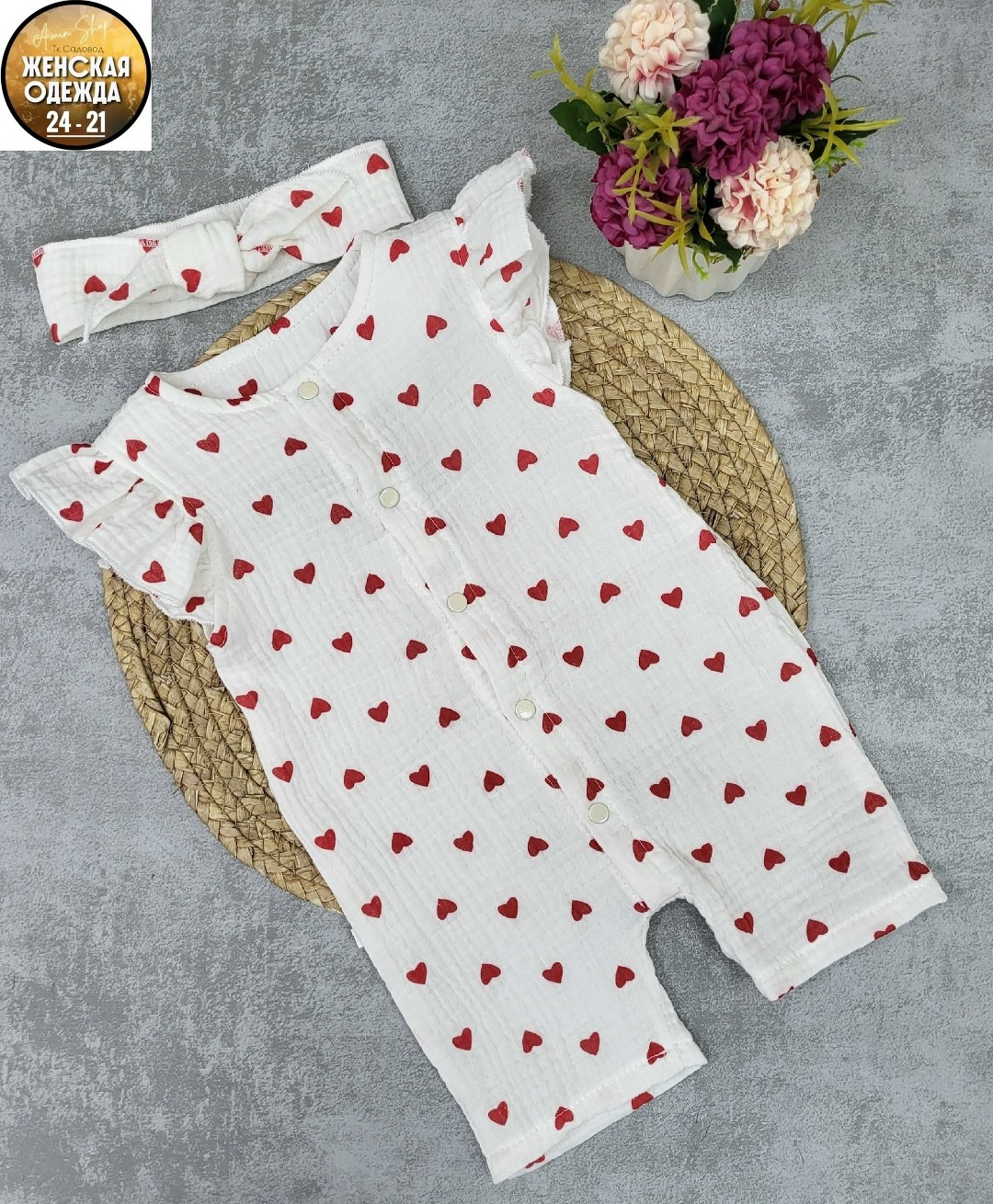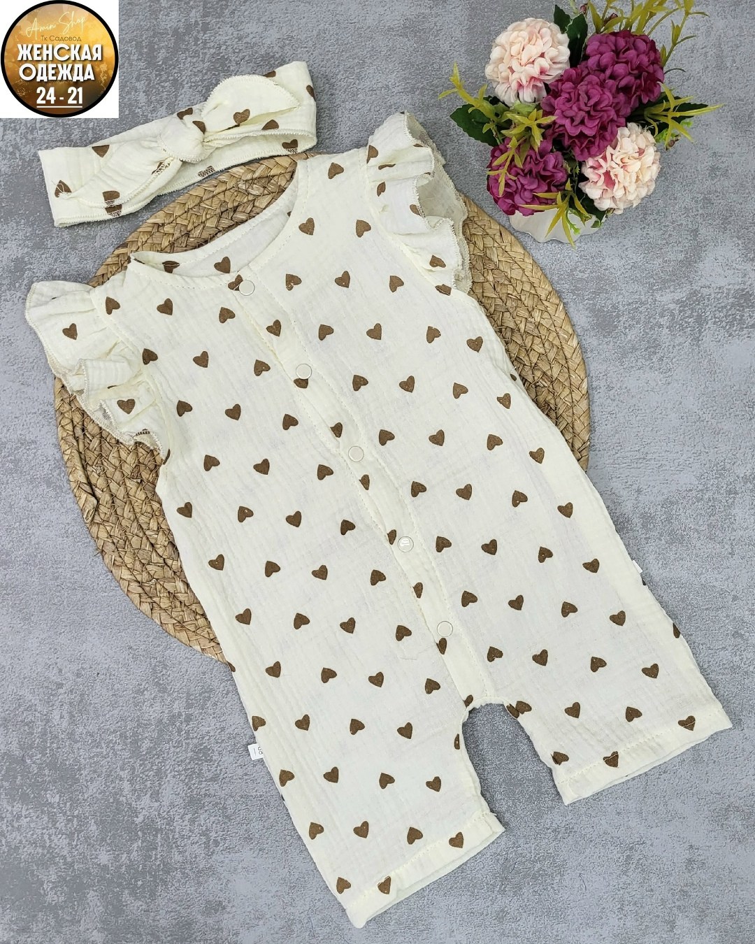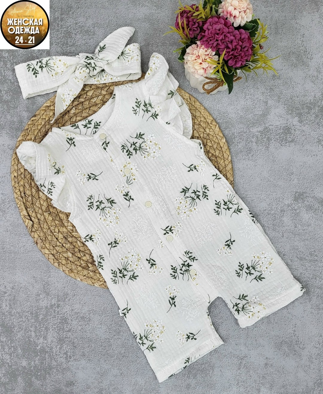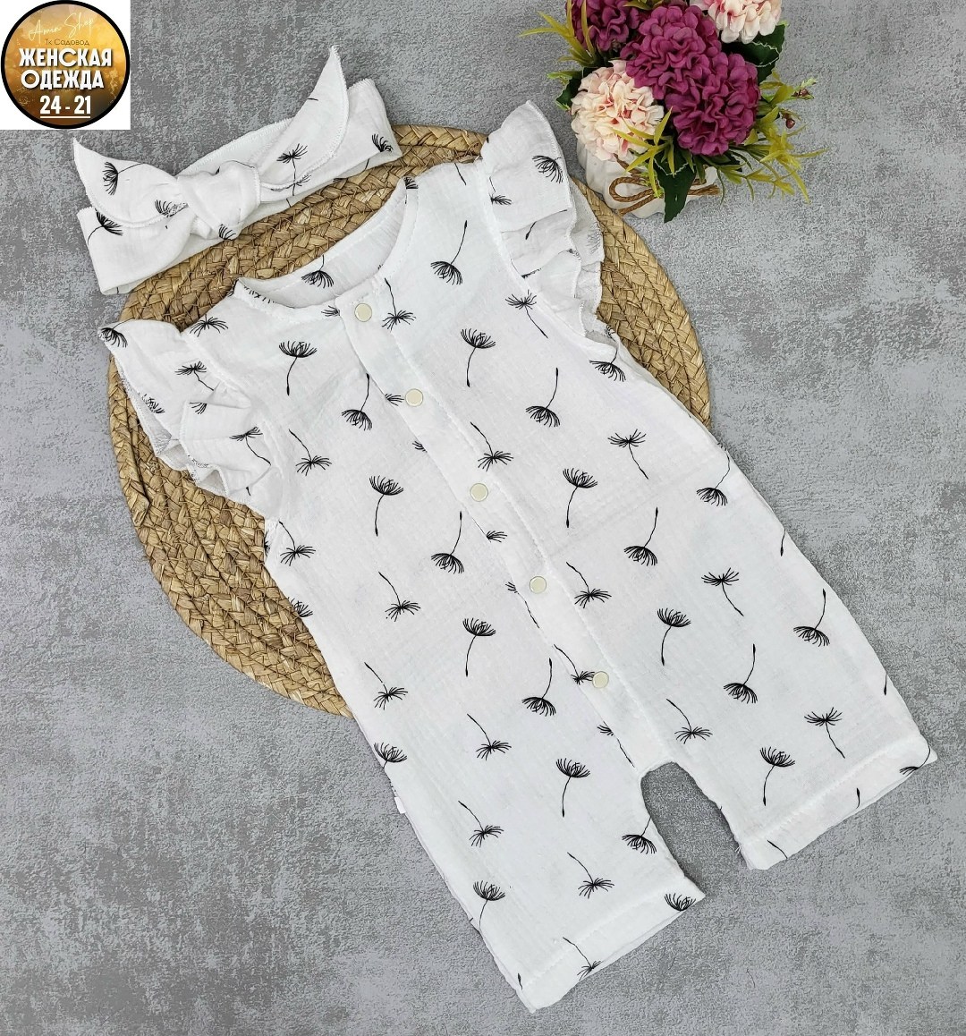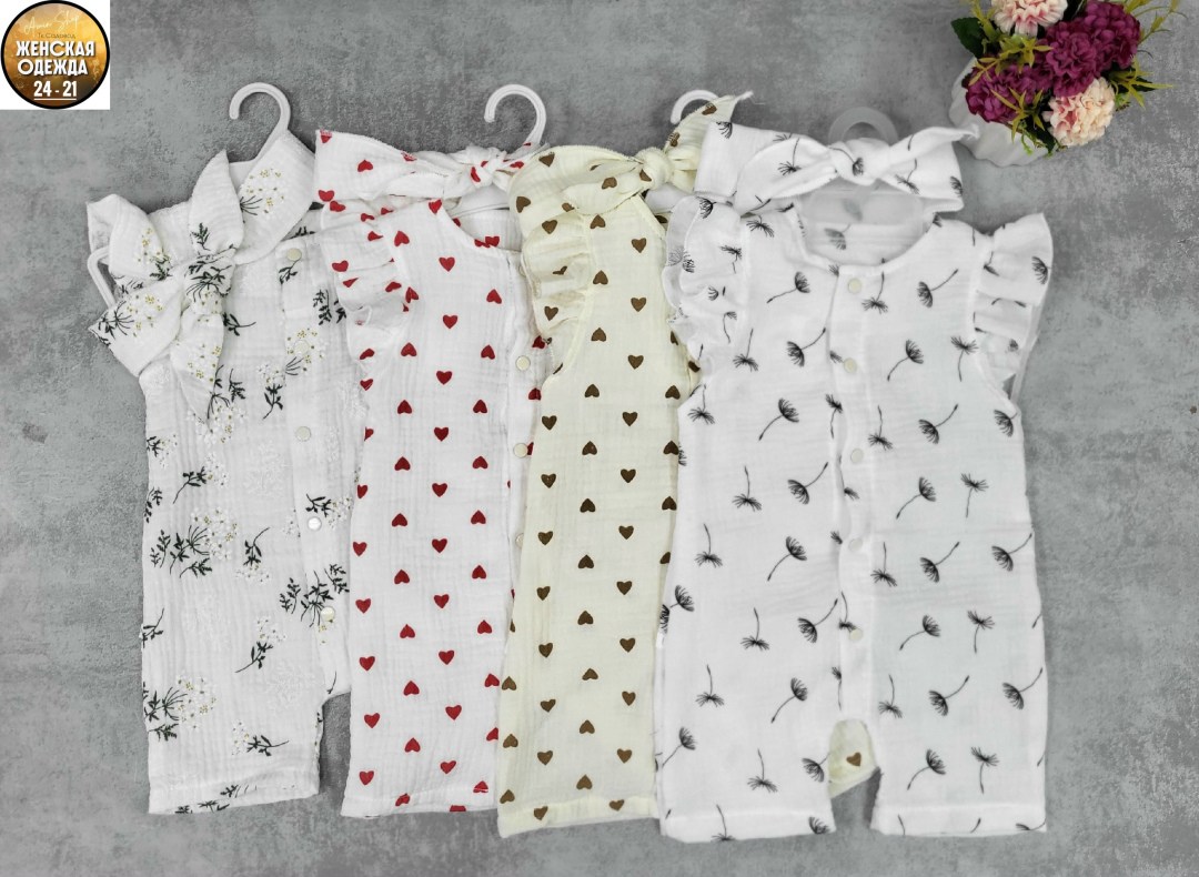 Детский летний муслиновый песочник с повязкой для девочек, из жатого хлопка муслина для новорожденных малышей идеально подходят как для дома, так и для прогулок летом.. На кнопках.