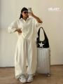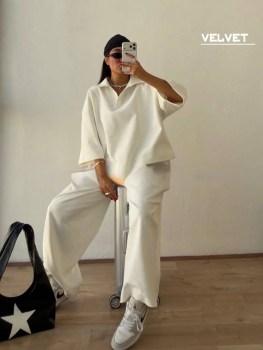 Элегантный костюм-двойка с широкими брюками стиль, который говорит сам за себя.