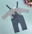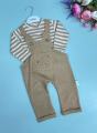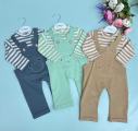 Нежный и удобный костюмчик для малышей, который идеально подойдт на каждый день Комплект состоит из мягкого лонгслива в полоску и стильного полукомбинезона с милым медвежонком.