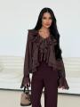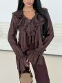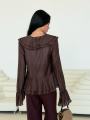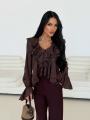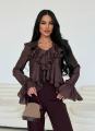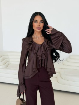 Ваша идеальная блуза для особенных моментов Эта блуза само воплощение нежности и женственности Струящийся волан вдоль v-образного выреза и изящная баска создают летящий, почти сказочный силуэт.