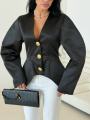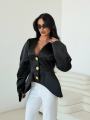 Встречайте жакет, который превращает любой выход в дефиле Ультрамодный силуэт с акцентом на талии и гипертрофированными рукавами-буффами Создает идеальную фигуру песочные часы.