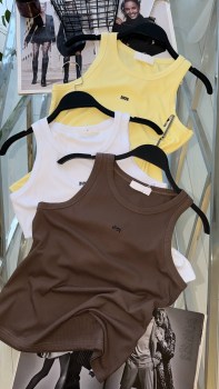 Базовые майки в рубчик с логотипом бренда из камещек.