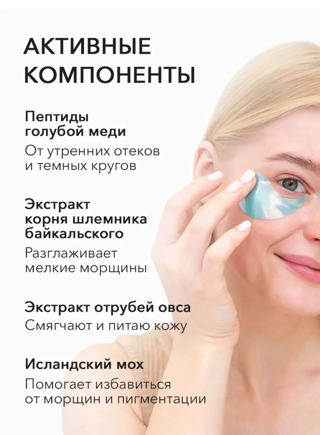 Увлажняющие патчи для глаз от темных кругов с пептидами.