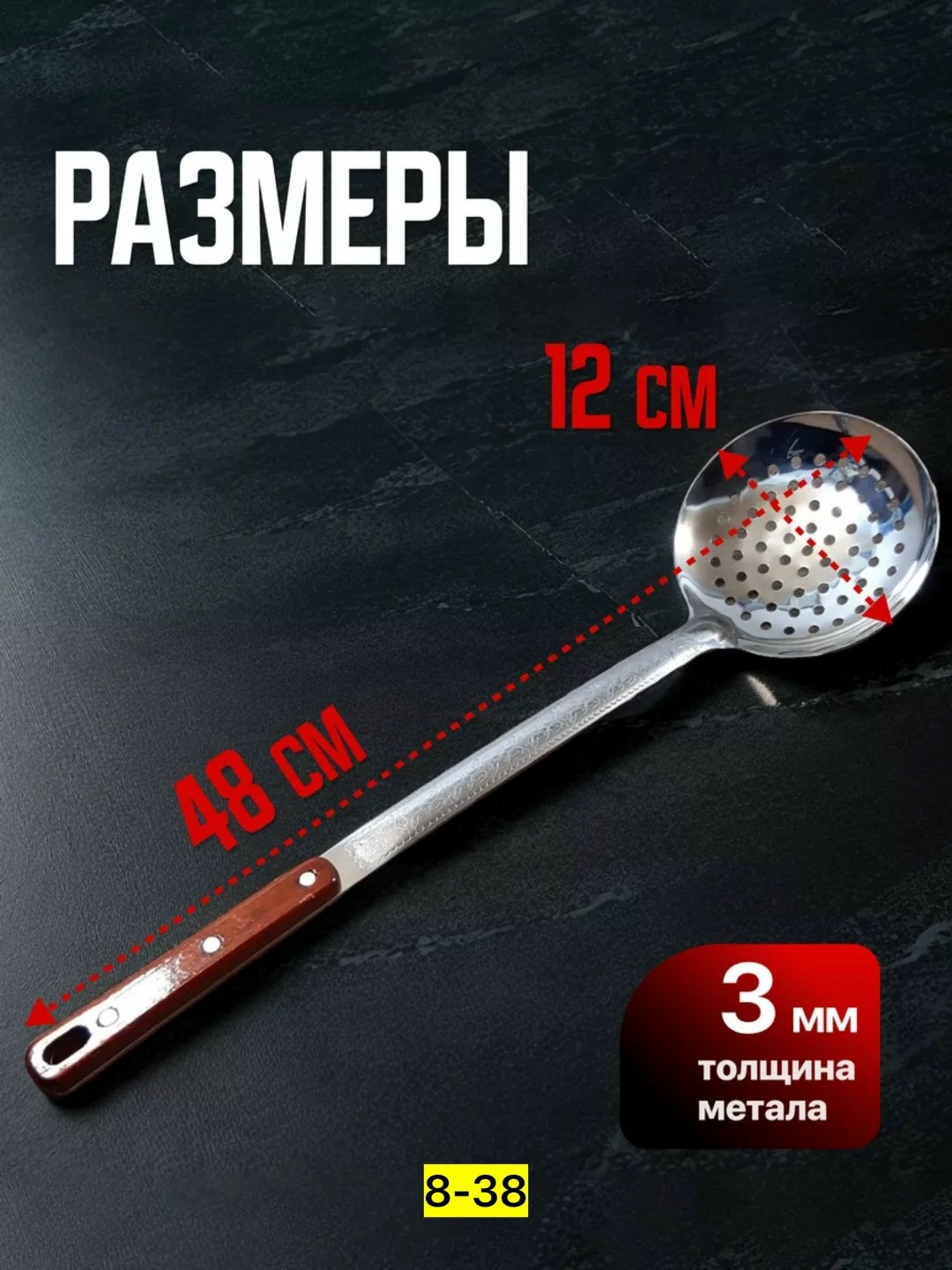 Шумовки для казана длиной 48 см - это идеальный выбор для тех, кто увлекается грилем и костром Изготовленны из железа и нержавеющей стали, а ручка из дерева Шумовка идеально дополнит ваш кухонный инвентарь для приготовления пищи.