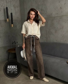 Коричневые трубы-джинсы с бохо пояском.