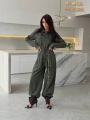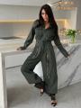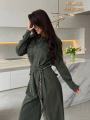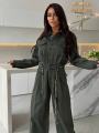 New минималистичный комбинезон в духе utilityfashion идеальный базовый элемент для капсулы Изготовлен из денима, модель сочетает женственность и практичность: отложной воротник, застжкапуговицы, карманы на груди и по бокам Талия подчркнута поясом, который визуально вытягивает силуэт; штанины свободные, струящиеся, обеспечивают комфорт и свободу движений.