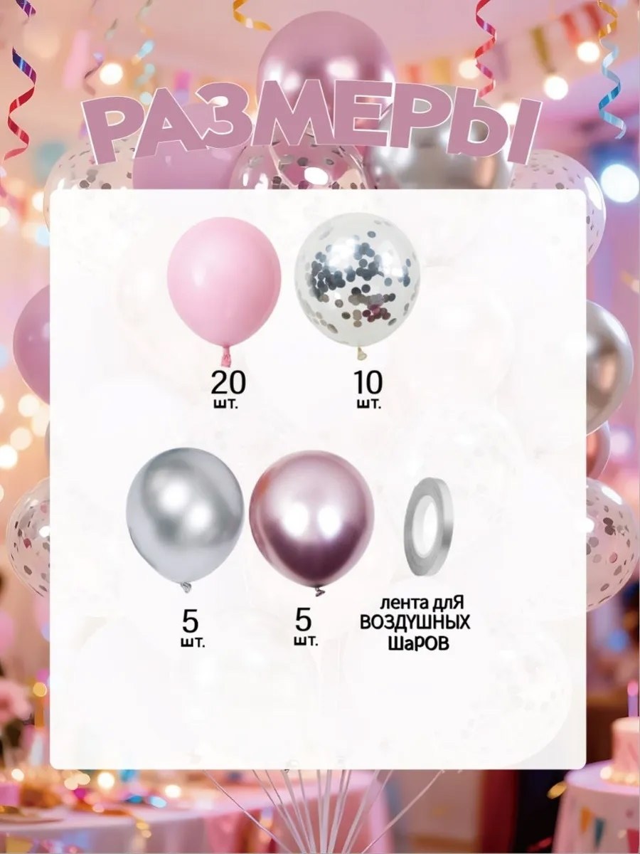 Диаметр предмета: 30 см Наборы пастельных и хромированных шариков прекрасно украсят любое торжество Шары из 100 латекса, размер - 30 см в диаметре Воздушные шары с конфетти создадут праздничное настроение и станут отличным украшением праздника.