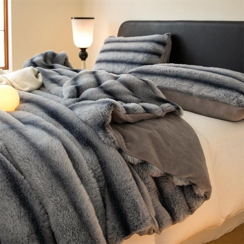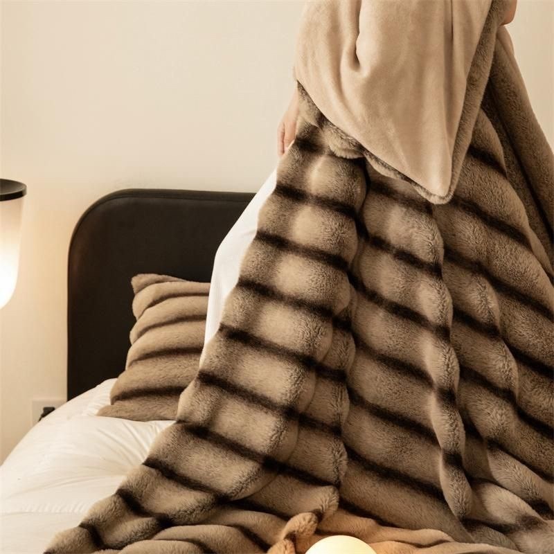 Пушистый и мягкий с плотным блестящим ворсом верх пледа напоминает мех кролика, другая сторона - шелковистый коротковорсовый искусственный мех Это сочетание всегда будет радовать вас своей красотой и уютом Плед отлично сохраняет тепло и не склонен к образованию пилей (катышков).