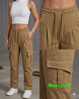 Брюки с высокой посадкой и рабочими карманами.