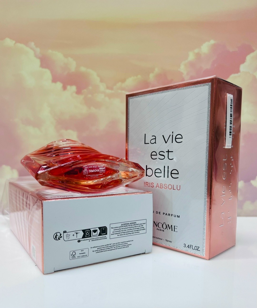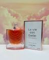 На флаконе lancome la vie est belle iris absolu изображено то, что дизайнеры называют бесконечной хрустальной улыбкой Нежно-розовый парфюм подсвечивает флакон изнутри, создавая иллюзию бесконечно расходящихся на хрустальной глади кругов Культовый бантик в форме крыльев подчеркивает элегантность дизайна флакона.