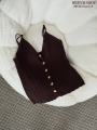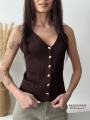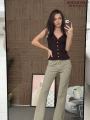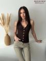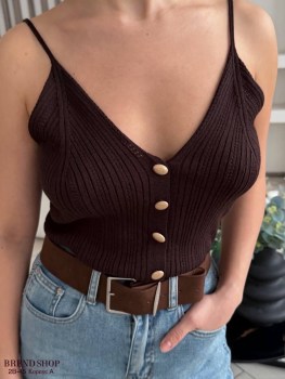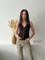 Вязаный топ на пуговицах в паре с джинсами-клеш создает утонченный и дорогой силуэт Идеальный мэтч для тех, кто ценит эстетику в каждой детали.