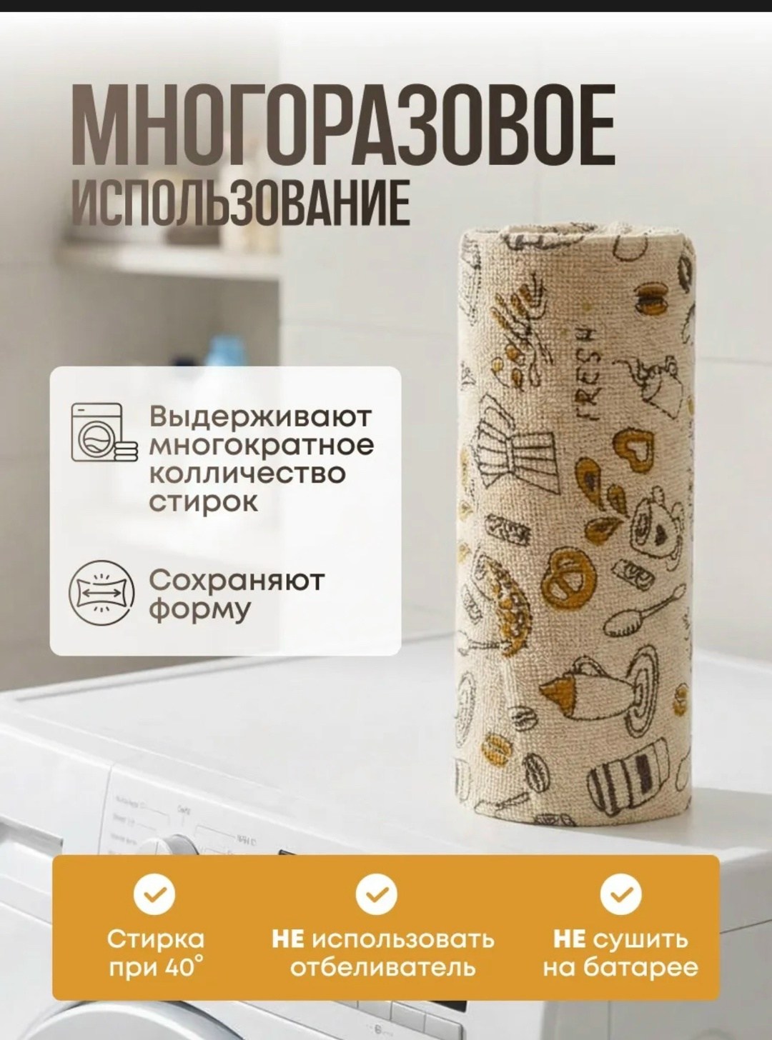 Многоразовые салфетки микрофибра в рулонах.