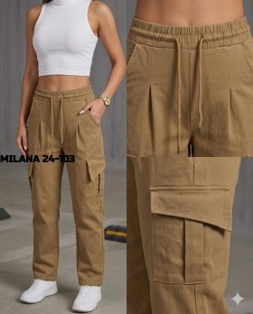 Брюки с высокой посадкой и рабочими карманами.